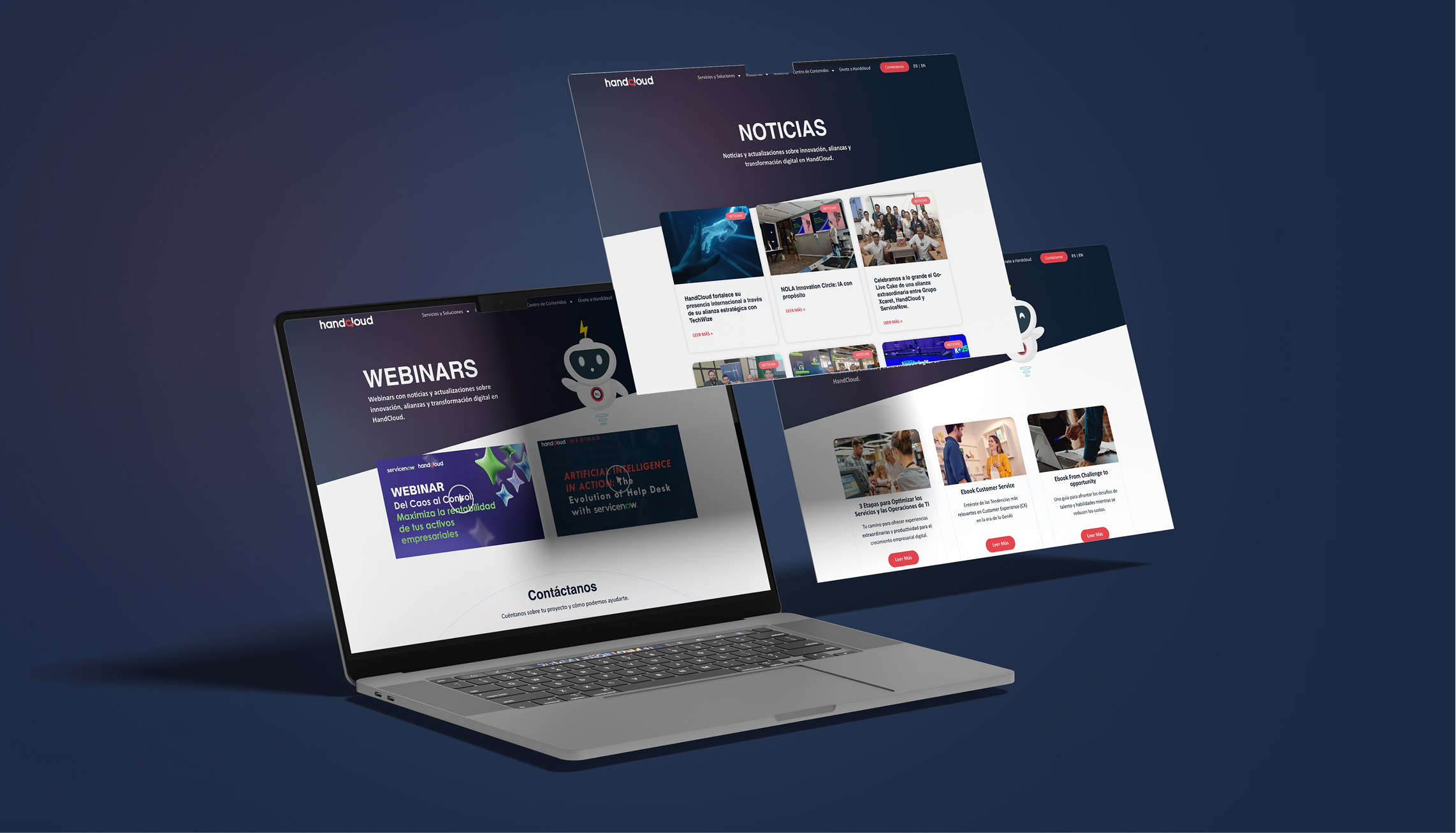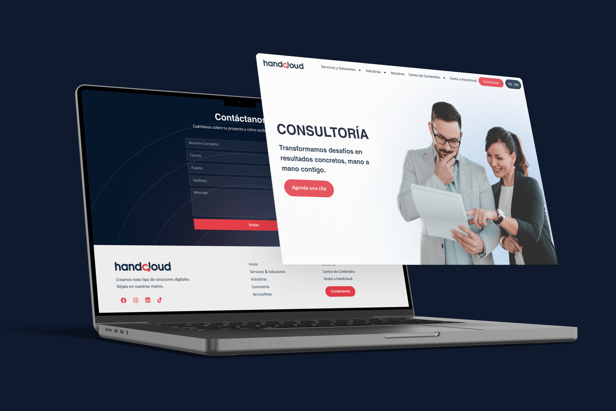 HandCloud es una consultora tecnológica con una trayectoria sólida y un fuerte posicionamiento en transformación digital y soluciones empresariales. Se desarrolló un sitio web integral de gran alcance, comenzando por un rediseño estratégico que moderniza por completo el estilo anterior, mejora la arquitectura de la información y optimiza la experiencia de navegación, logrando una comunicación clara y ordenada en cada sección.